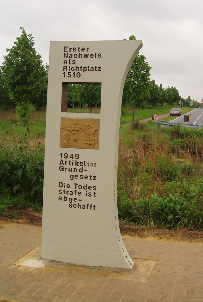 Zur Erinnerung an den Richtplatz hat der Heimatverein am 8. Mai 2014 in der Nähe des Mittelpunktes eine